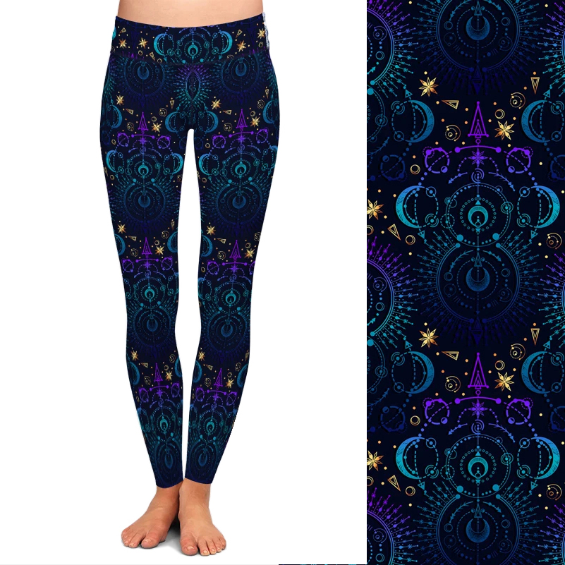 Step into a world of cosmic elegance with these mesmerizing leggings, featuring a celestial-inspired pattern in deep midnight hues accented by shimmering gold and vibrant purples. Crafted for all-day wear, they combine a soft, breathable fabric with a stretch that moves effortlessly with you. Perfect for adding a touch of magic to your everyday style, these leggings offer a flattering fit without any pinching or slipping—just smooth, comfortable confidence from dawn till dusk.