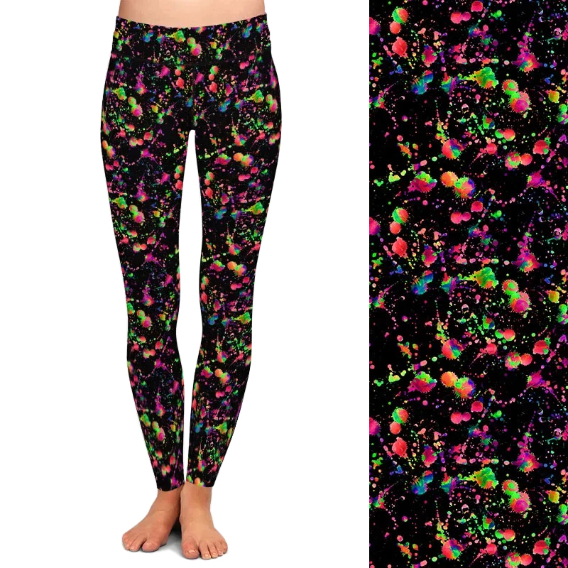Unleash your vibrant side with these leggings that burst with a dynamic splash of neon colors against a sleek black backdrop. Crafted for those who love to stand out, they combine eye-catching style with a soft, breathable fabric that feels like a second skin. Designed to move effortlessly with you throughout your day, these leggings offer a flattering fit with no slipping or squeezing—just pure all-day comfort and a bold statement in every step.