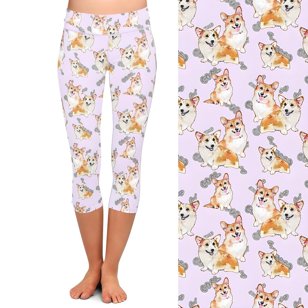 Step into a world of playful charm with these capri leggings featuring an adorable corgi pattern on a soft lavender backdrop. Designed for everyday ease, they blend a delightful, whimsical print with unmatched comfort. Smooth to the touch and crafted to fit effortlessly, these leggings promise no pinching or pulling—just pure softness, stretch, and a flattering fit that moves with you all day long.