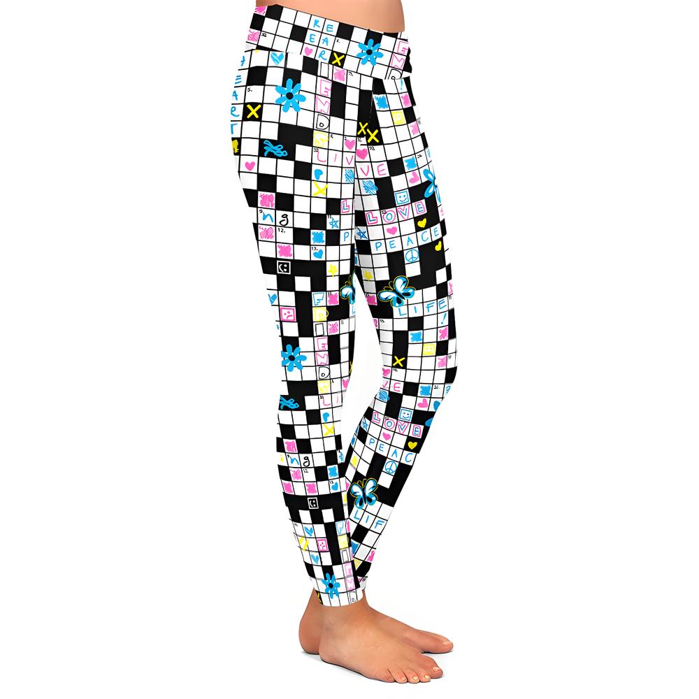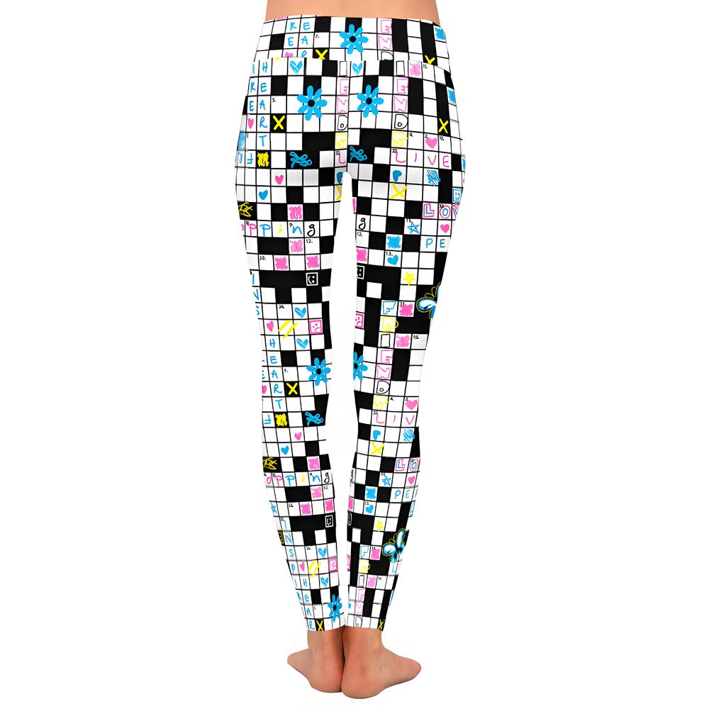 Step into a world of playful charm with leggings that bring a vibrant crossword puzzle to life. Bursting with colorful doodles, hearts, peace signs, and butterflies, this design adds a fun, whimsical touch to your everyday look. Crafted with ultra-soft fabric, these leggings offer a breathable stretch and a flattering fit that moves with you effortlessly. Experience comfort without compromise—no slipping, no squeezing, just all-day ease you’ll love to wear.