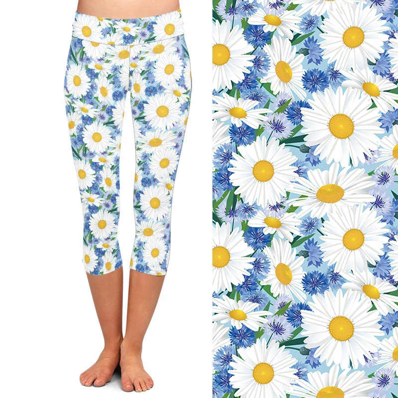 Step into a fresh burst of floral charm with these capri leggings, where cheerful daisies and delicate blue blossoms create a lively garden-inspired look. Designed for all-day ease, they offer a flawless blend of softness, stretch, and support that moves with you effortlessly. Embrace a vibrant, uplifting style that brightens every moment without sacrificing comfort or fit.