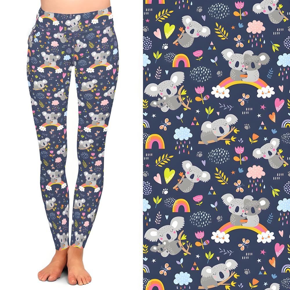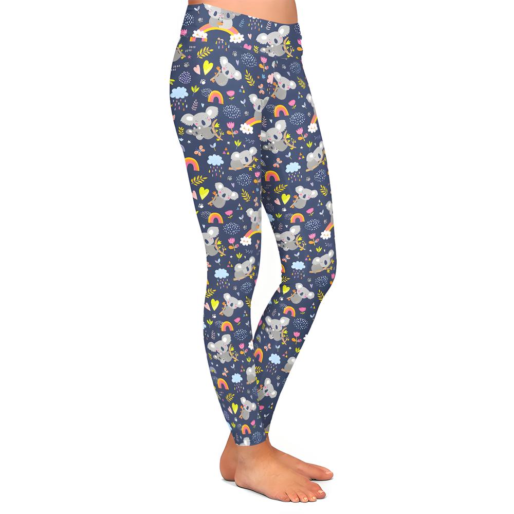Embrace playful charm with leggings that bring a whimsical touch to your everyday wardrobe. Featuring an adorable pattern of cuddly koalas, rainbows, and delicate florals on a soothing navy backdrop, these leggings are as delightful as they are comfortable. Crafted for all-day wear, they offer a breathable stretch and a soft-touch feel that moves effortlessly with you. Say goodbye to slipping or squeezing—just pure, lasting comfort wrapped in a fun, eye-catching design you’ll love to wear.