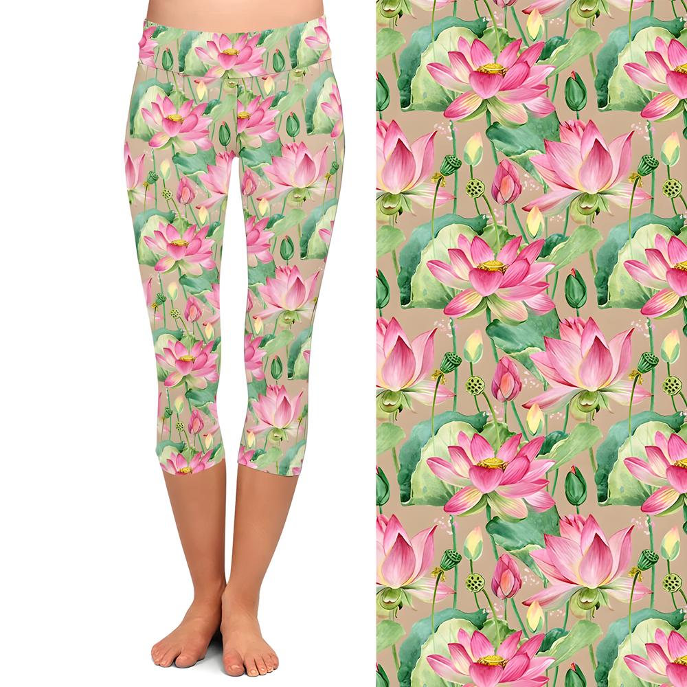 Step into a world of delicate beauty with these capri leggings featuring a vibrant lotus floral pattern that evokes a serene garden in full bloom. Crafted for all-day comfort, they offer a seamless fit that moves effortlessly with you—no pinching, no pulling. Experience the perfect blend of softness, stretch, and support wrapped in an enchanting design that adds a fresh, feminine touch to your everyday wardrobe.