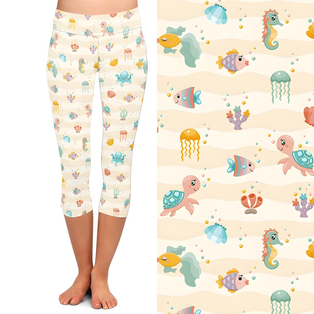 Dive into a whimsical underwater adventure with these playful capri leggings, featuring charming sea creatures like turtles, seahorses, and octopuses in soft pastel hues. Designed for all-day comfort, they offer a gentle stretch and flattering fit that moves seamlessly with you. Embrace a fun, lighthearted style that brings a splash of ocean-inspired joy to your everyday wardrobe.