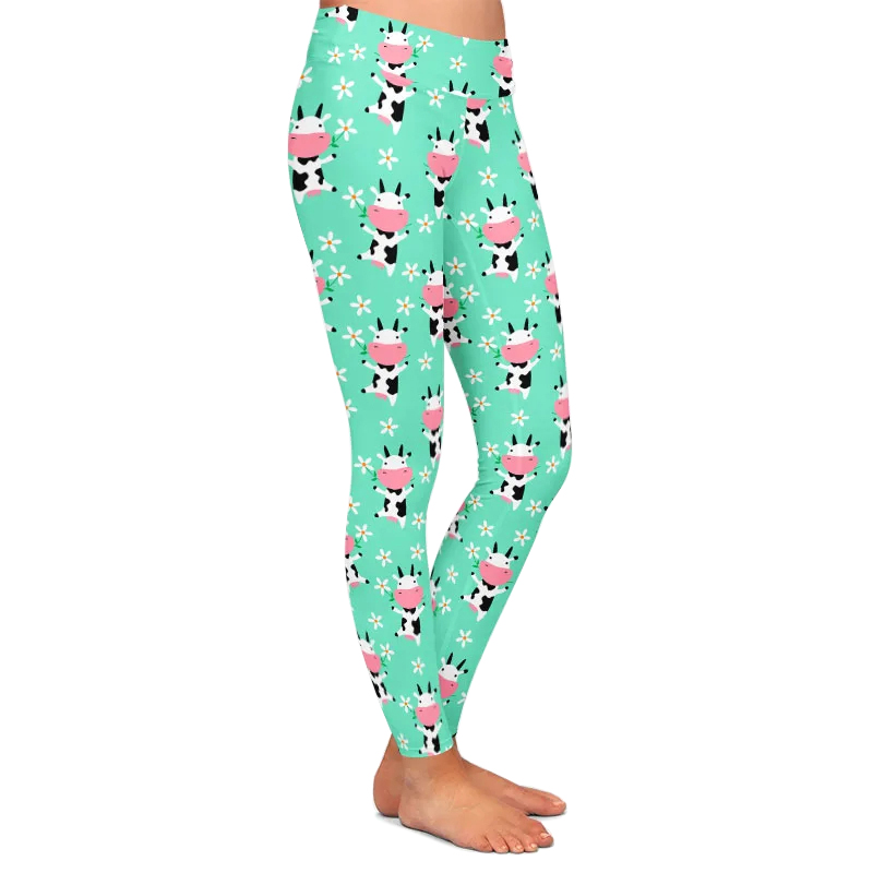 Brighten your day with these delightfully playful leggings featuring cheerful cows and fresh daisies set against a lively mint backdrop. Crafted for comfort, they hug your curves with a breathable stretch and a soft-touch finish that feels as good as it looks. Perfect for adding a whimsical pop to your everyday wardrobe, these leggings promise no slipping, no squeezing—just pure, effortless style and comfort from dawn till dusk.