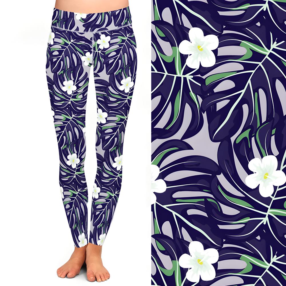 Embrace the spirit of tropical elegance with these leggings, featuring bold, deep purple monstera leaves intertwined with delicate white blossoms on a soft lavender backdrop. Crafted for those who love to stand out effortlessly, they combine a breathable stretch and a gentle touch that moves seamlessly with your day. From casual strolls to relaxed moments at home, enjoy a flattering fit that never slips or squeezes, making comfort feel like a natural part of your style.