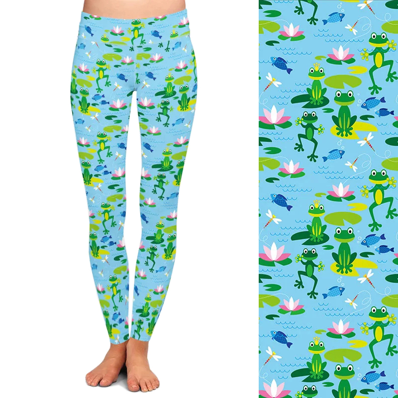 Celebrate playful charm with leggings that bring a whimsical pond scene to life—featuring cheerful frogs, lily pads, and delicate dragonflies against a serene blue backdrop. Crafted for all-day ease, these leggings offer a flattering fit with breathable stretch and a soft-touch feel that moves seamlessly with you. Enjoy comfort without compromise—no slipping, no squeezing, just effortless style that brightens your day.