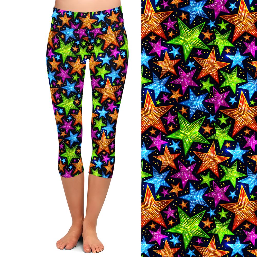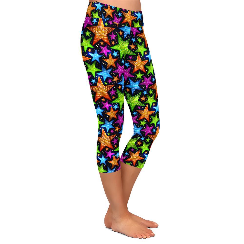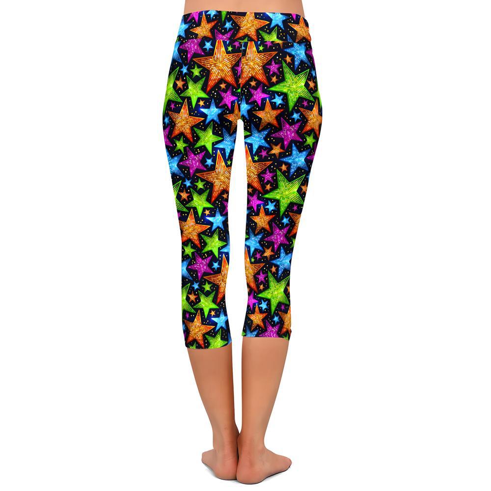 Step into a world of vibrant energy with these eye-catching capri leggings, featuring a dazzling explosion of colorful stars that light up every room. Designed to keep you feeling comfortable and confident all day long, they offer a flawless fit with just the right amount of stretch and support. Say goodbye to discomfort and hello to your new favorite go-to leggings that make a bold style statement effortlessly.