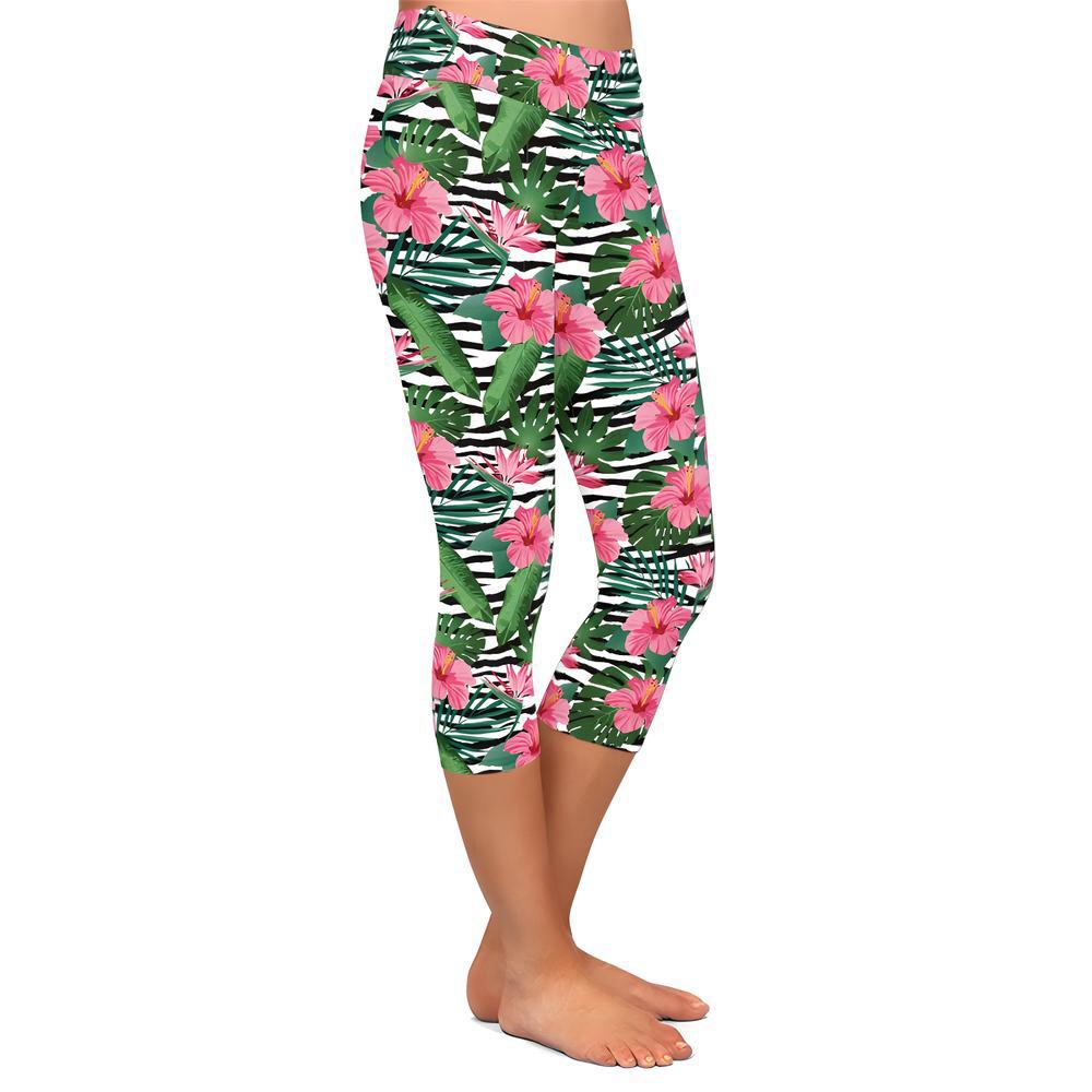 Step into a vibrant blend of bold zebra stripes and lush tropical blooms that instantly elevate your everyday style. These capri leggings bring a playful yet sophisticated edge to your wardrobe, combining eye-catching pink hibiscus flowers with rich green foliage for a fresh, energetic vibe. Crafted for all-day comfort, they offer a flawless fit with just the right amount of stretch, ensuring you feel as good as you look in every moment.
