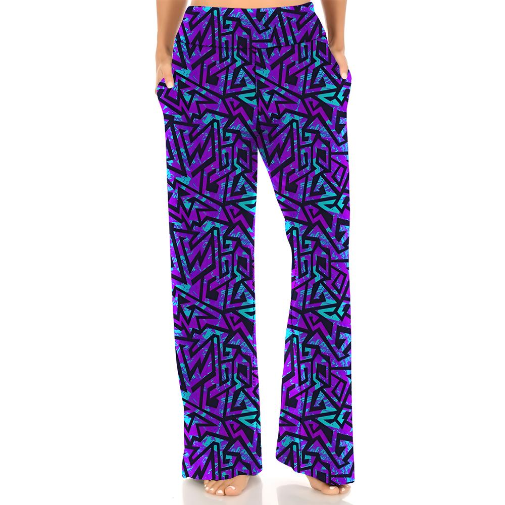 Step into a world of bold expression with these wide-leg palazzos, featuring a dynamic zigzag pattern in vibrant purples and blues that electrify your everyday look. Designed to flatter with a flowing silhouette and a smooth, flexible waistband, they blend striking style with ultimate comfort. Whether you’re unwinding at home or making a statement out and about, these leggings offer effortless ease and a splash of artistic flair to your wardrobe.